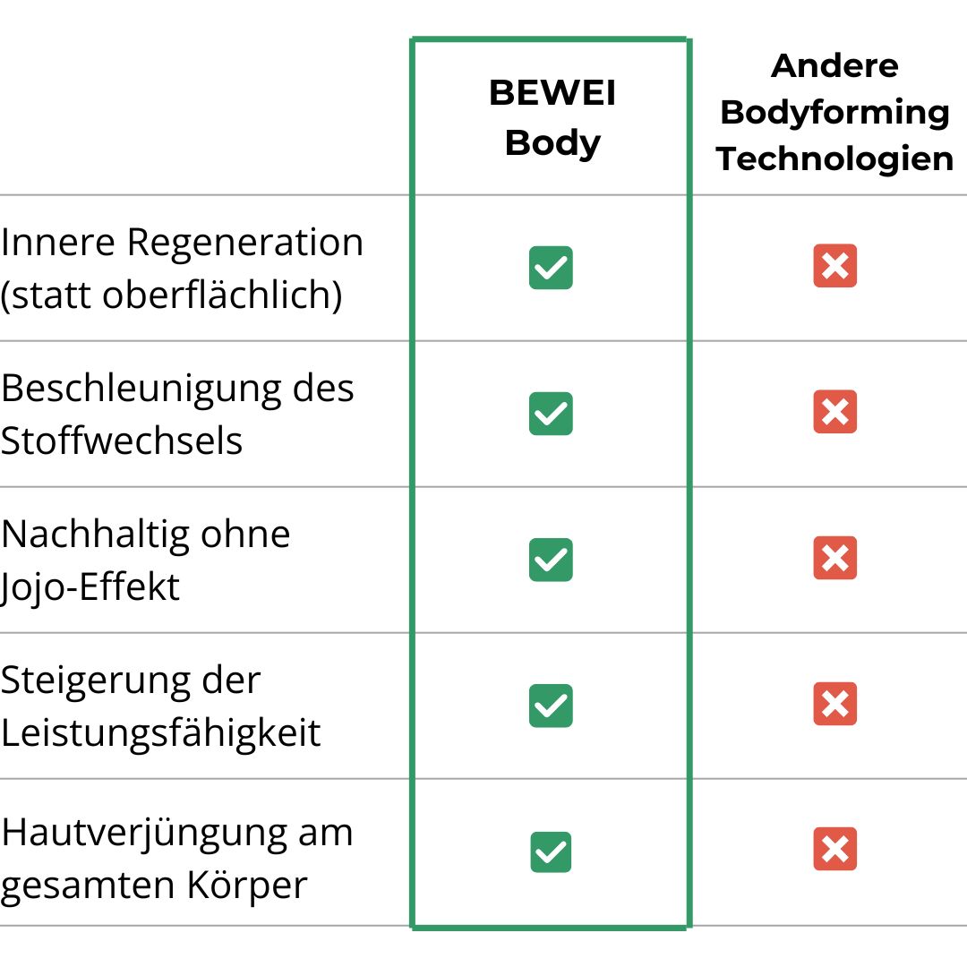BEWEI Body eignet sich besonders für Menschen mit Gewichtsproblemen, Cellulite, Hauterschlaffung oder jene, die sichtbare Erscheinungen der Hautalterung entgegenwirken möchten.
